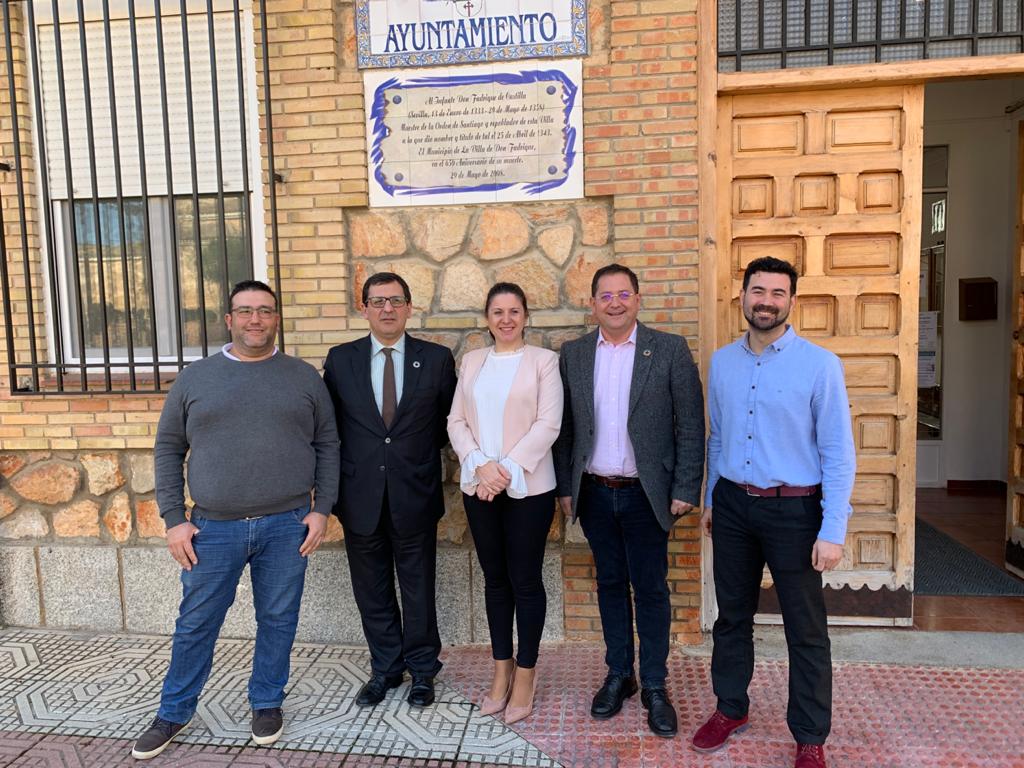 La alcaldesa de La Villa de don Fadrique, Macarena Aguado, ha mantenido una reunión en el Ayuntamiento de la localidad, en la mañana del martes 4 de febrero, con los delegados de Toledo de la Junta de Comunidades, del Gobierno, Javier Úbeda, de Desarrollo Sostenible, Tomás Villarrubia Lázaro, y de Economía, Empresas y Empleo, Julián Martín Alcántara. Además, estuvieron presentes junto a la regidora fadriqueña, el teniente de alcalde y concejal de Urbanismo y Empleo, Rodolfo Tello, y el concejal de Agricultura y Medio Ambiente, Julián Gómez.